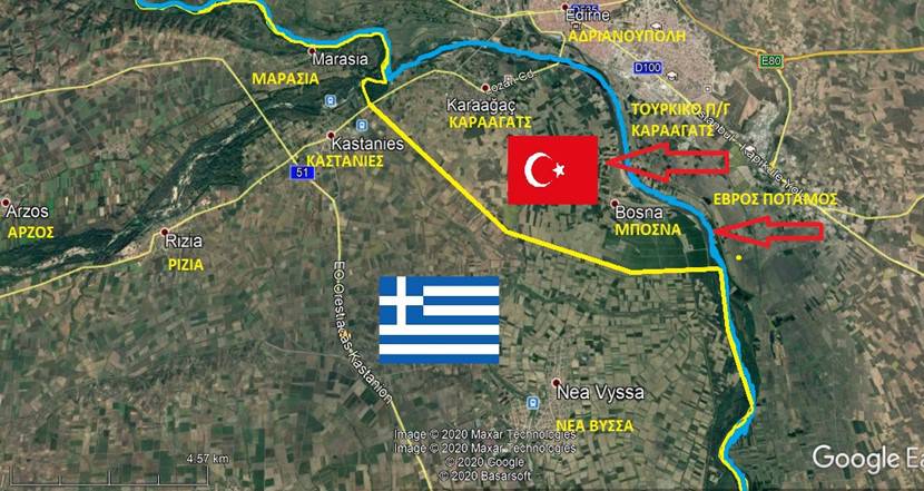 Αυτή έδωσε στη δημοσιότητα μια περιοχή απέναντι από εκεί που συνέβησαν τα γεγονότα, στην ανατολική πλευρά του ποταμού, όπου ο θύλακας εκεί (κτήμα Μιχαηλίδη) είναι ελληνικό έδαφος, (τα γεγονότα συνέβησαν όπως φαίνονται στην παρακάτω φωτογραφία, στο μωβ χρώμα, με την ένδειξη “έμφραξη”, στο Νότιο μέρος του προγεφυρώματος των Φερρών, στην Δυτική πλευρά του Έβρου ποταμού). Αυτό που συνέβη ήταν η προσπάθεια της Ελλάδος να θωρακίσει πλήρως τα σύνορά μας στον Έβρο, μετά τις απειλές της Τουρκίας για νέο κύκλο υβριδικού πολέμου, με εργαλειοποίηση-οπλοποίηση του μεταναστευτικού.