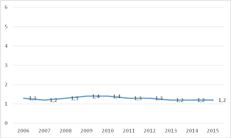 Πίνακας 1- Αμυντικός Προϋπολογισμός της Γερμανίας ως % του ΑΕΠ (2006-15)- (Πηγή: The World Bank)