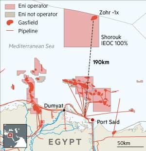 Πράγματι, την τελευταία Κυριακή του περασμένου Αυγούστου, η Ιταλική εταιρία  εξέδωσε μια σύντομη, πλην συγκλονιστική ανακοίνωση, στην οποία ισχυρίζεται οτι ανακάλυψε ανοικτά της Μεσογειακής ακτής της Αιγύπτου, στη περιοχή Zohr 1X NFH, του οικοπέδου Shorouk, 6 μόλις χιλιόμετρα νοτιότερα από την ΑΟΖ (Αποκλειστική Οικονομική Ζώνη) της Κύπρου και σε βάθος 1.450 μέτρων από την επιφάνεια της θάλασσας, το μεγαλύτερο κοίτασμα ‘καθαρού’ φυσικού αερίου (lean natural gas) που έχει ανακαλυφθεί ποτέ στη λεκάνη της Μεσογείου. Σύμφωνα με υπολογισμούς της ίδιας της εταιρίας, που προέκυψαν από τη σεισμική έρευνα που διεξήγαγε, το συγκεκριμένο κοίτασμα, εκτεινόμενο σε μια περιοχή 100 τετραγωνικών χιλιομέτρων ενδέχεται να περιέχει 30 τρις κυβικά πόδια (tcf) φυσικού αερίου, μια ποσότητα που ισοδυναμεί με 5,5 δις βαρέλια πετρελαίου[1]. Η Ιταλική εταιρία, η οποία αξίζει να σημειώσουμε σε αυτό το σημείο ότι δεν είναι άγνωστη στην Αίγυπτο, καθώς δραστηριοποιείται ήδη από το 1954 στη χώρα μέσο της θυγατρικής της, IEOC (International Egyptian Oil Company) θα προχωρήσει άμεσα στις διαδικασίες ανάπτυξης  και αξιοποίησης του κοιτάσματος, ώστε η παραγωγή αερίου προς κατανάλωση να ξεκινήσει μεταξύ 2018 – 9.