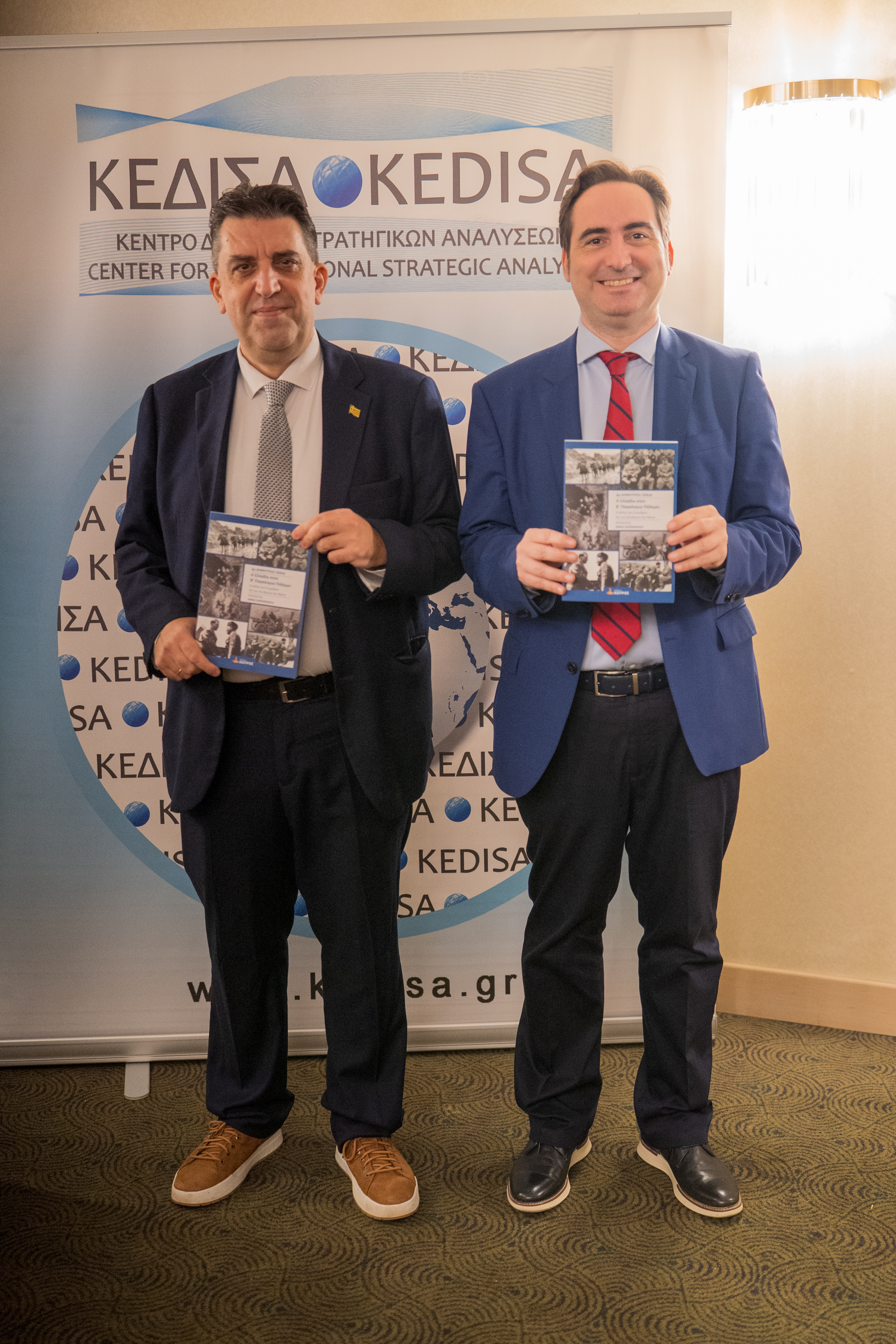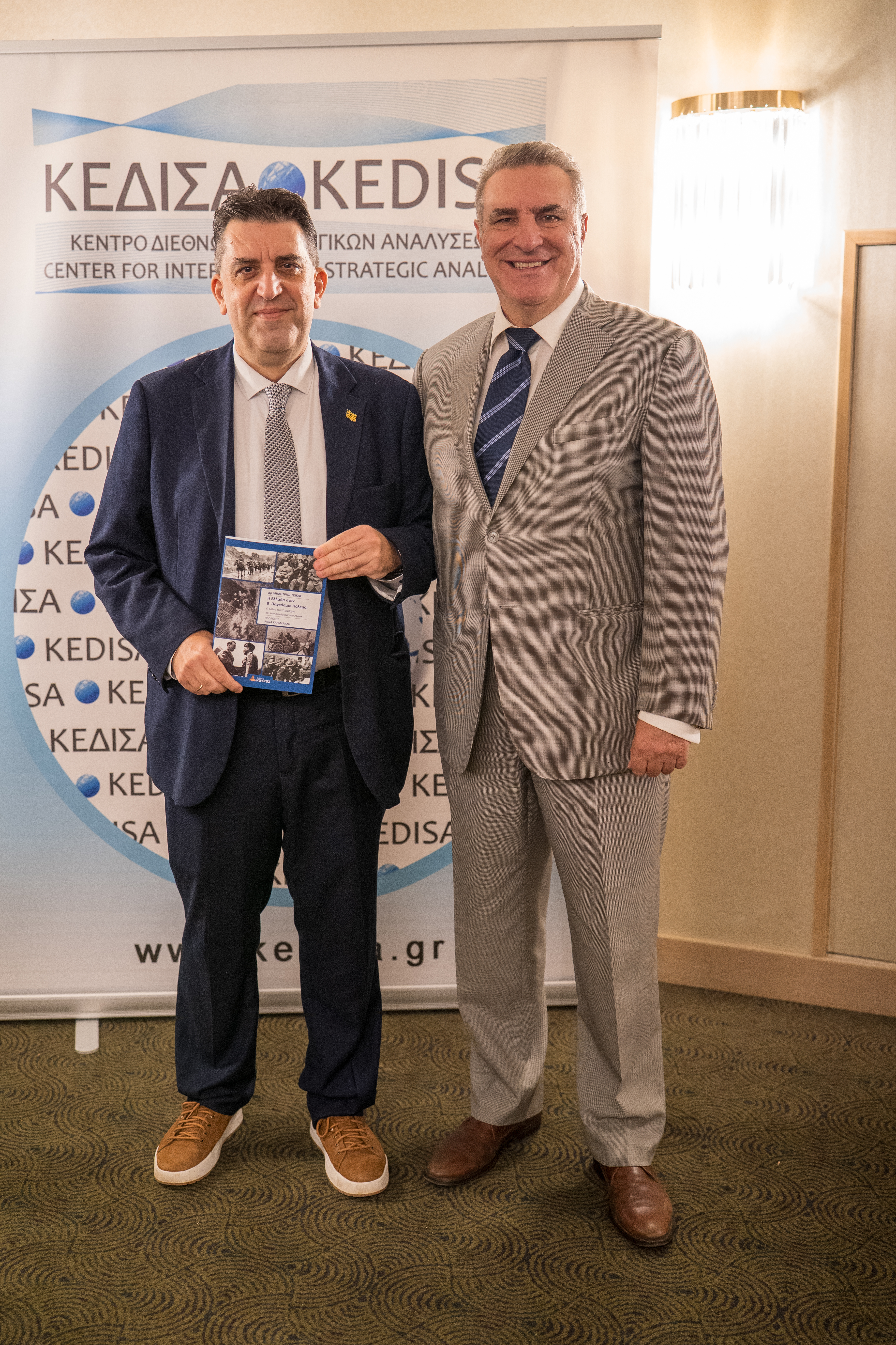 Με μεγάλη επιτυχία πραγματοποιήθηκε η παρουσίαση του ιστορικού βιβλίου του Δρ. Δημητρίου Γκίκα, με τίτλο: «Η Ελλάδα στον Β’ Παγκόσμιο Πόλεμο: Ο ρόλος των Συμμάχων και των Δυνάμεων του Άξονα», που κυκλοφορεί από τις Εκδόσεις ΚΟΥΡΟΣ, με την ευγενική υποστήριξη του ΚΕΔΙΣΑ. Η εκδήλωση διεξήχθη στο Amalia Hotel, την Δευτέρα 20 Οκτωβρίου 2025. Ομιλητές ήταν: ο Σπυρίδων Κονιδάρης, (Αντιναύαρχος ε.α.), ο Δρ Κωνσταντίνος Γρίβας (Καθηγητής Γεωπολιτικής και Σύγχρονων Στρατιωτικών Τεχνολογιών στην Στρατιωτική Σχολή Ευελπίδων), ο Δρ Διονύσιος Τσιριγώτης (Αναπληρωτής Καθηγητής Νεότερης & Σύγχρονης Ιστορίας στο Πανεπιστήμιο Πειραιώς) και ο Συγγραφέας Δρ Δημήτριος Γκίκας. Συντονιστής της εκδήλωσης ήταν ο κ.Δημήτρης Τζιβελέκης, (Δημοσιογράφος και Διευθυντής Ενημέρωσης του Ρ/Σ ΑΘΗΝΑ 9.84).